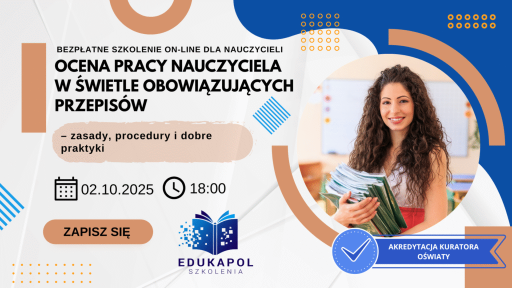 Zaświadczenie elektroniczne do szkolenia „Ocena pracy nauczyciela w świetle obowiązujących przepisów – zasady, procedury i dobre praktyki”