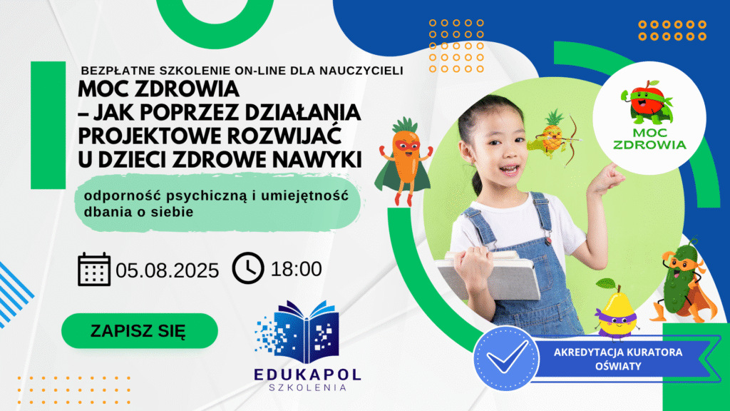Zaświadczenie elektroniczne do szkolenia „MOC ZDROWIA – jak poprzez działania projektowe rozwijać u dzieci zdrowe nawyki, odporność psychiczną i umiejętność dbania o siebie”