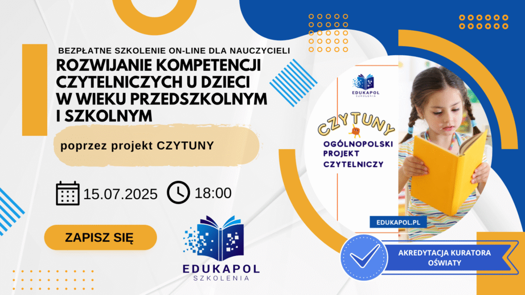 Zaświadczenie elektroniczne do szkolenia „Rozwijanie kompetencji czytelniczych u dzieci w wieku przedszkolnym i szkolnym poprzez projekt CZYTUNY”