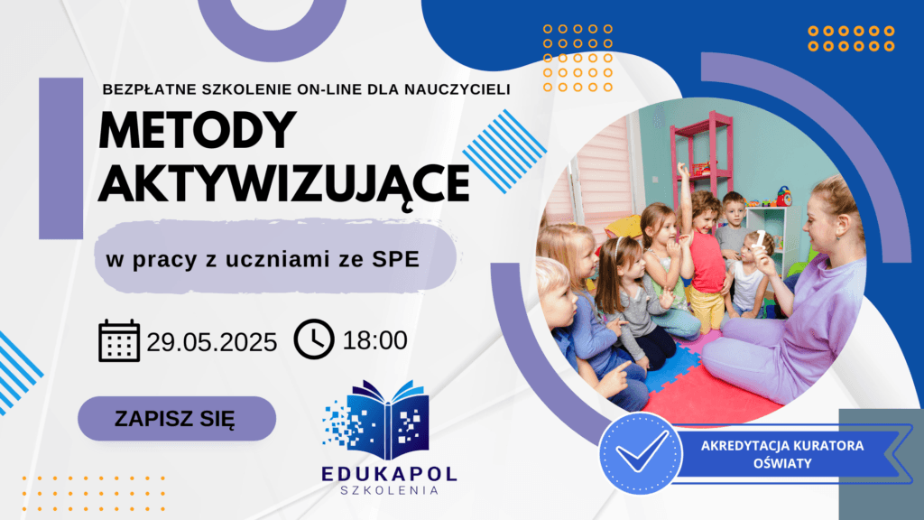 Zaświadczenie elektroniczne do szkolenia „Metody aktywizujące w pracy z uczniami ze specjalnymi potrzebami edukacyjnymi”