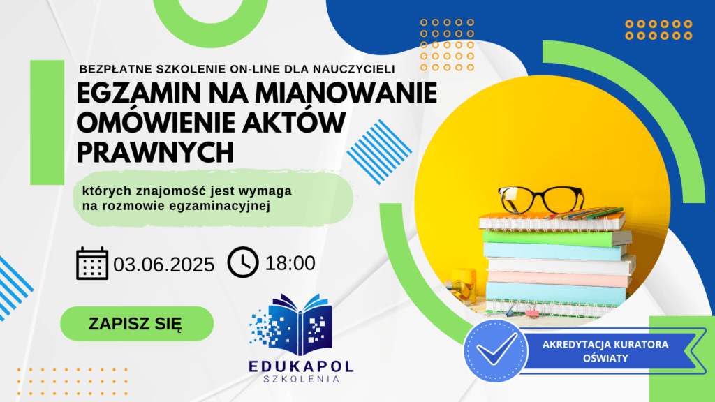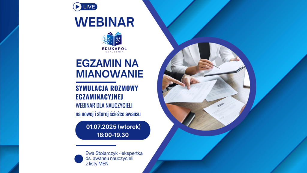 WEBINAR DLA NAUCZYCIELI: EGZAMIN NA MIANOWANIE – SYMULACJA ROZMOWY EGZAMINACYJNEJ – WEBINAR DLA NAUCZYCIELI na nowej i starej ścieżce awansu