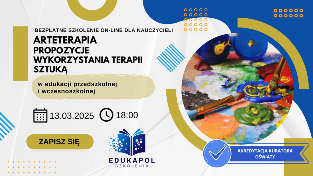 Zaświadczenie elektroniczne do szkolenia „Arteterapia. Propozycje wykorzystania terapii sztuką w edukacji przedszkolnej i wczesnoszkolnej”