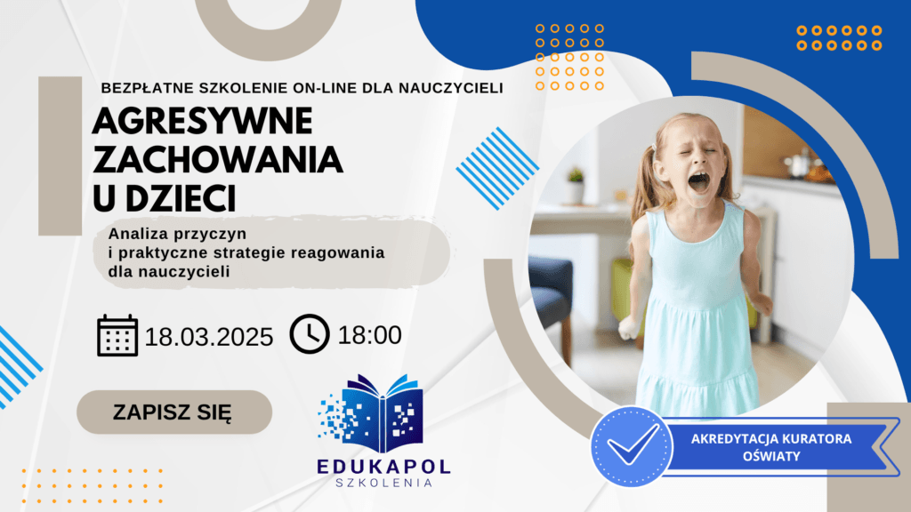 Zaświadczenie elektroniczne do szkolenia „Agresywne zachowania u dzieci. Analiza przyczyn i praktyczne strategie reagowania dla nauczycieli”