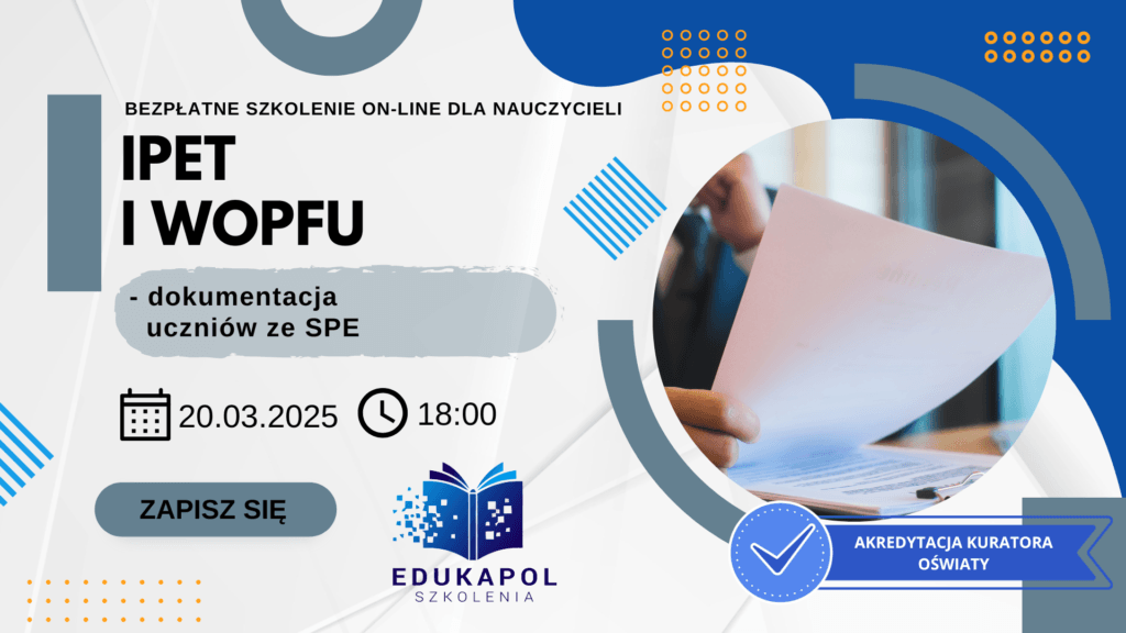 Zaświadczenie elektroniczne do szkolenia „IPET i WOPFU – dokumentacja uczniów ze SPE”
