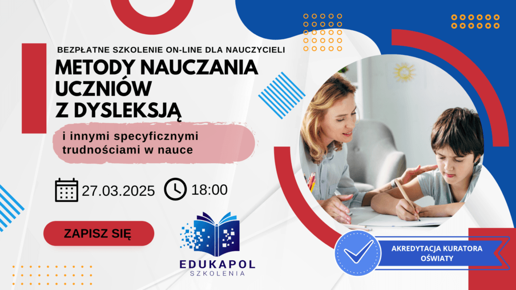 Zaświadczenie elektroniczne do szkolenia „Metody nauczania uczniów z dysleksją i innymi specyficznymi trudnościami w nauce”