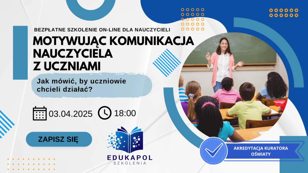 Zaświadczenie elektroniczne do szkolenia „Motywująca komunikacja nauczyciela z uczniami. Jak mówić, by uczniowie chcieli działać?”
