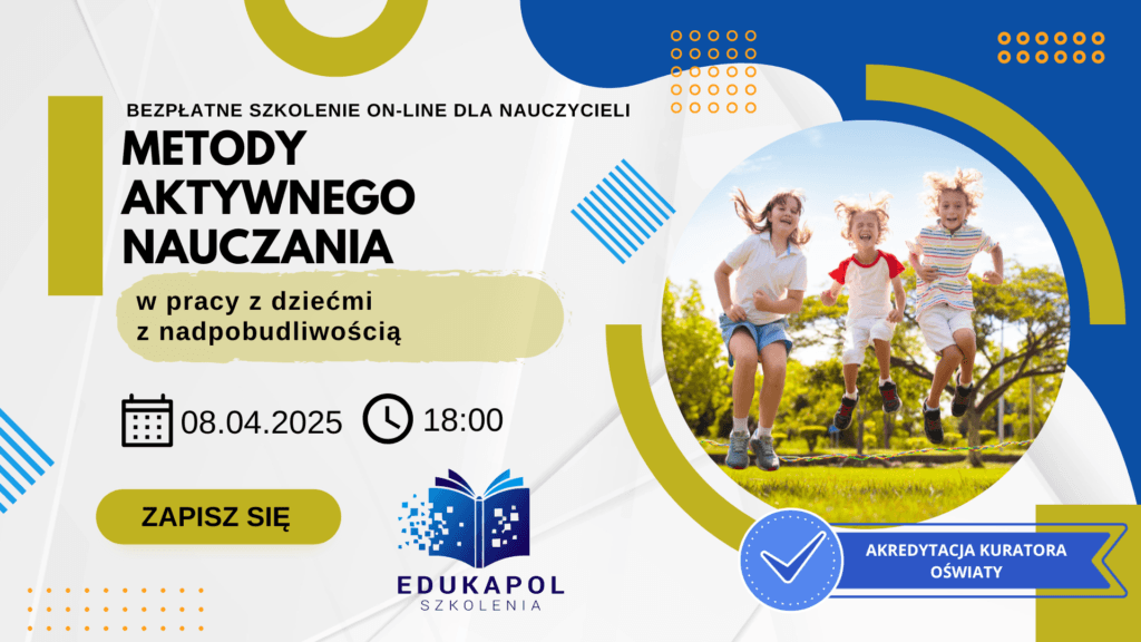 Zaświadczenie elektroniczne do szkolenia „Metody aktywnego nauczania w pracy z dziećmi z nadpobudliwością”