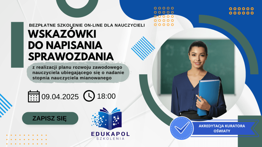 Zaświadczenie elektroniczne do szkolenia „Wskazówki do napisania sprawozdania z realizacji planu rozwoju zawodowego nauczyciela ubiegającego się o nadanie stopnia nauczyciela mianowanego”