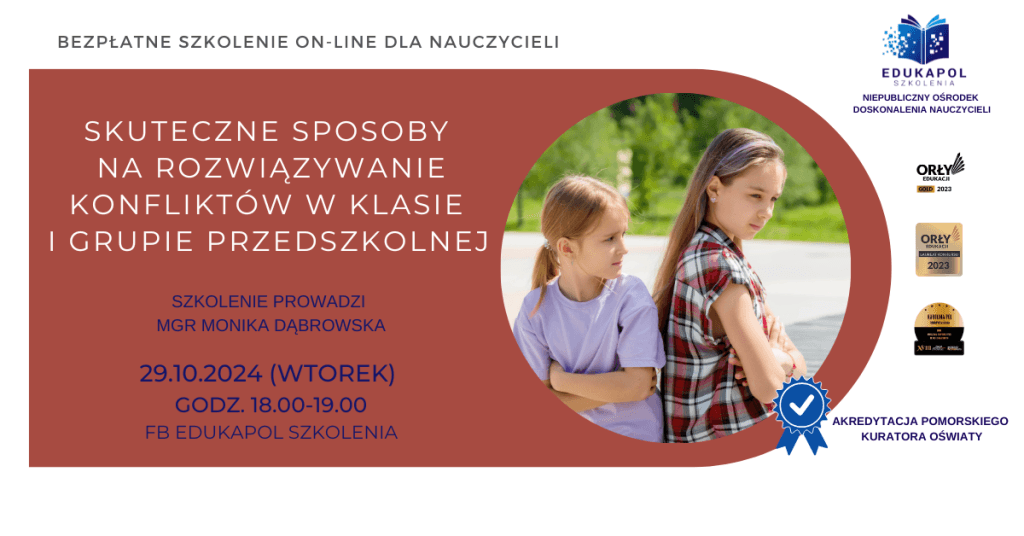 Zaświadczenie 2 do szkolenia „Skuteczne sposoby na rozwiązywanie konfliktów w klasie i grupie przedszkolnej”