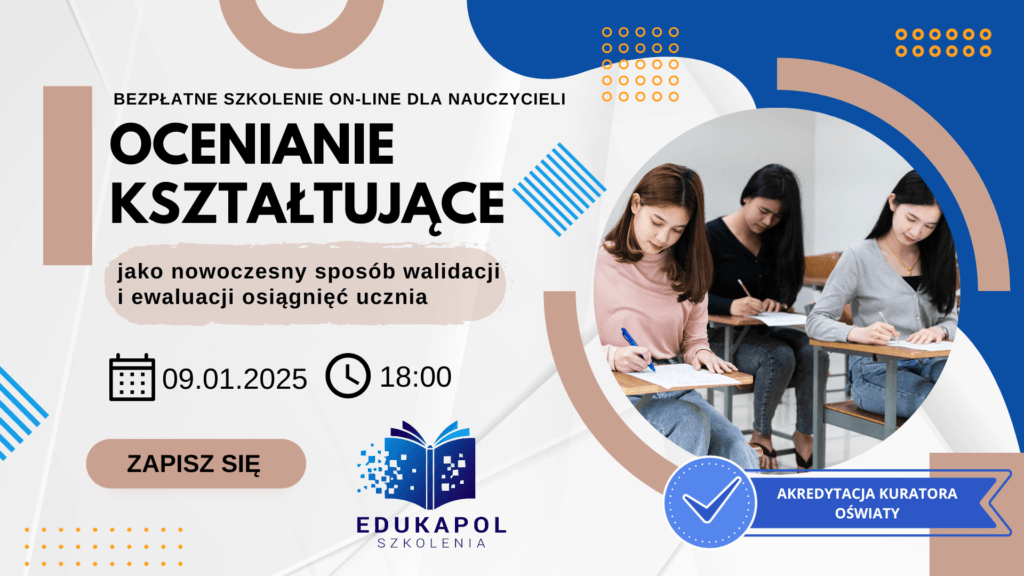 Zaświadczenie elektroniczne do szkolenia „Ocenianie kształtujące jako nowoczesny sposób walidacji i ewaluacji osiągnięć ucznia”