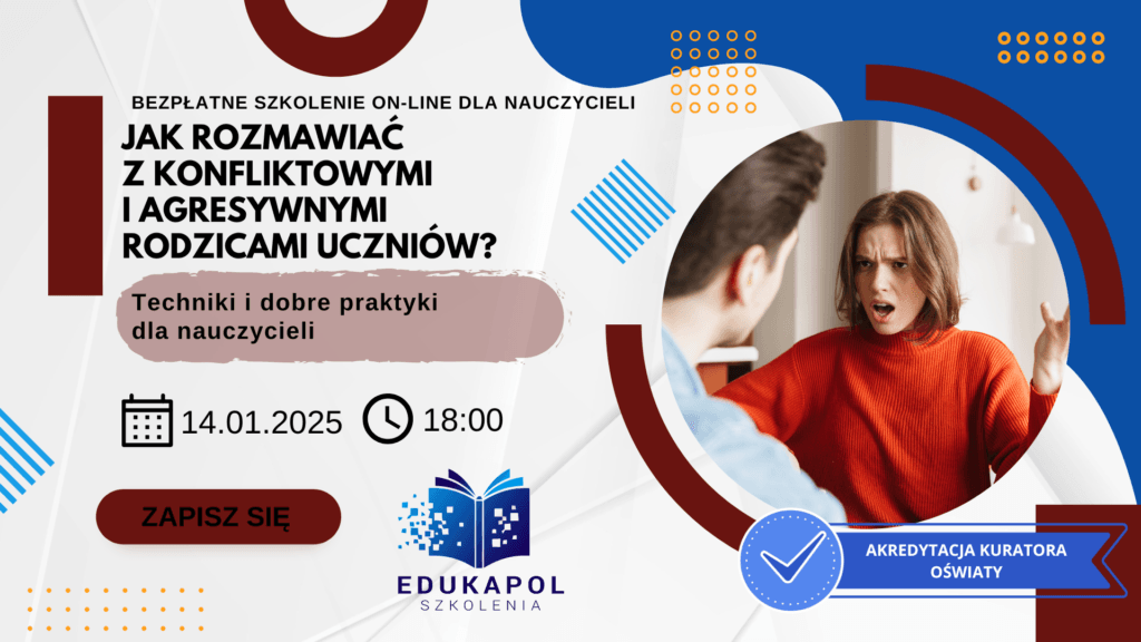 Zaświadczenie elektroniczne do szkolenia „Jak rozmawiać z konfliktowymi i agresywnymi rodzicami uczniów? Techniki i dobre praktyki dla nauczycieli”
