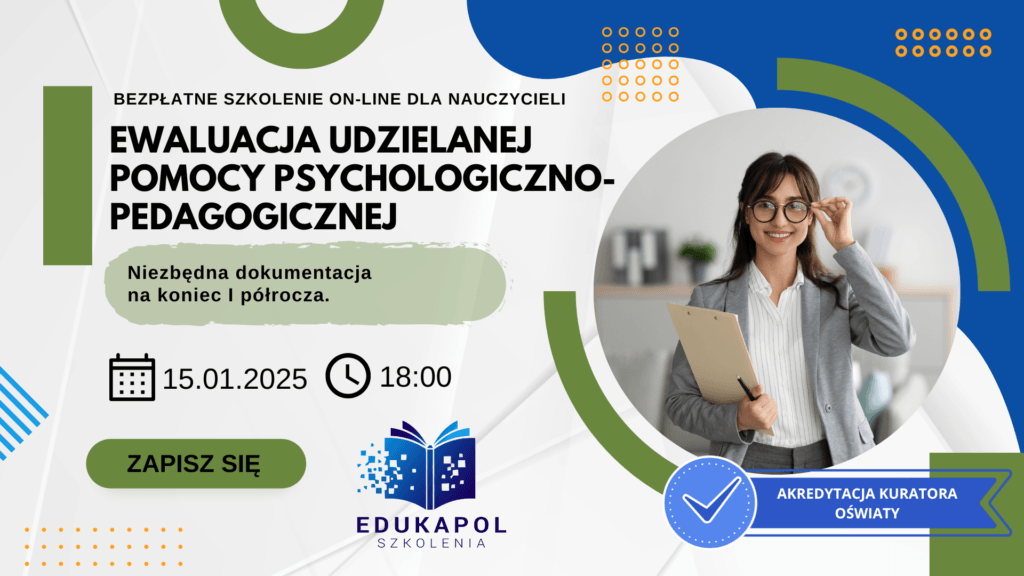 Zaświadczenie elektroniczne do szkolenia „Ewaluacja udzielanej pomocy psychologiczno-pedagogicznej. Niezbędna dokumentacja na koniec I półrocza”