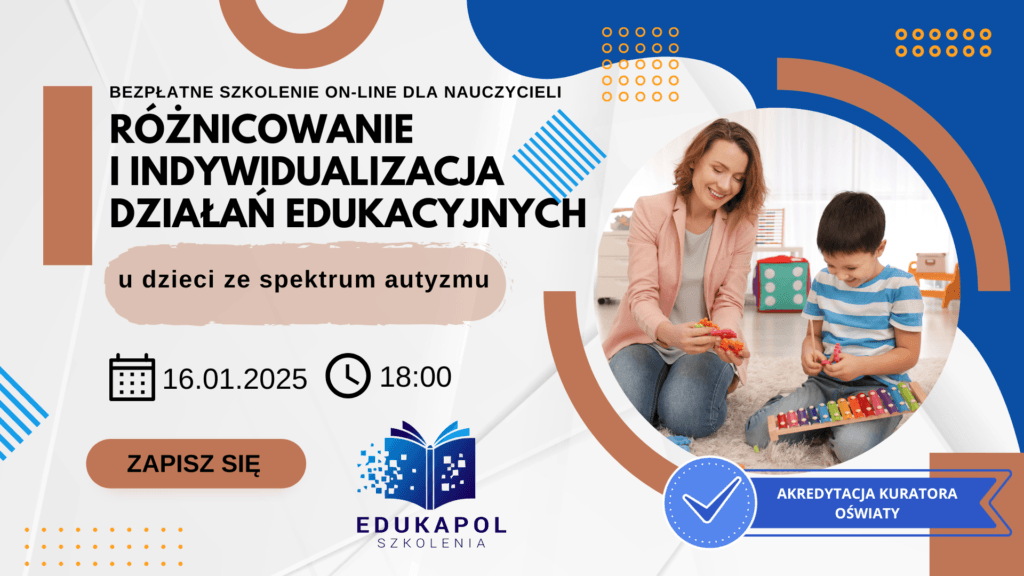 Zaświadczenie elektroniczne do szkolenia „Różnicowanie i indywidualizacja działań edukacyjnych u dzieci ze spektrum autyzmu”