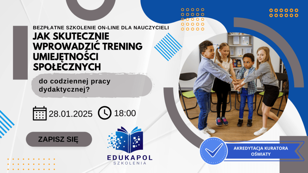 Zaświadczenie elektroniczne do szkolenia „Jak skutecznie wprowadzić Trening Umiejętności Społecznych do codziennej pracy dydaktycznej?”