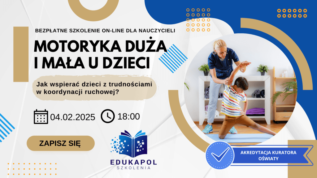 Zaświadczenie elektroniczne do szkolenia „Motoryka duża i mała u dzieci. Jak wspierać dzieci z trudnościami w koordynacji ruchowej?”
