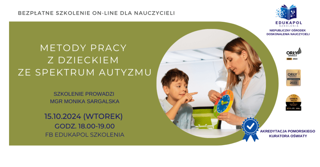 Zaświadczenie do szkolenia „Metody pracy z dzieckiem ze spektrum autyzmu”