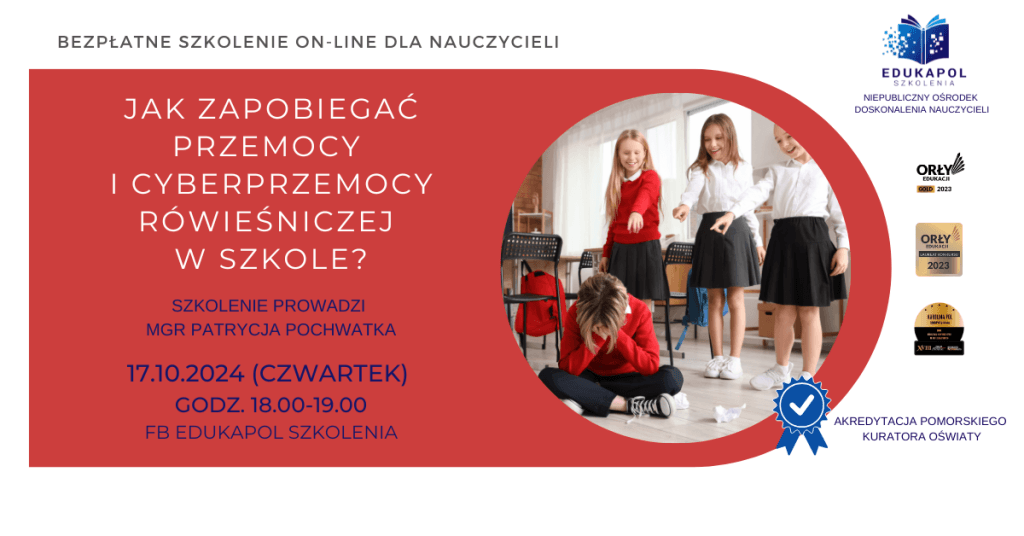 Zaświadczenie do szkolenia „Jak zapobiegać przemocy i cyberprzemocy rówieśniczej w szkole?”