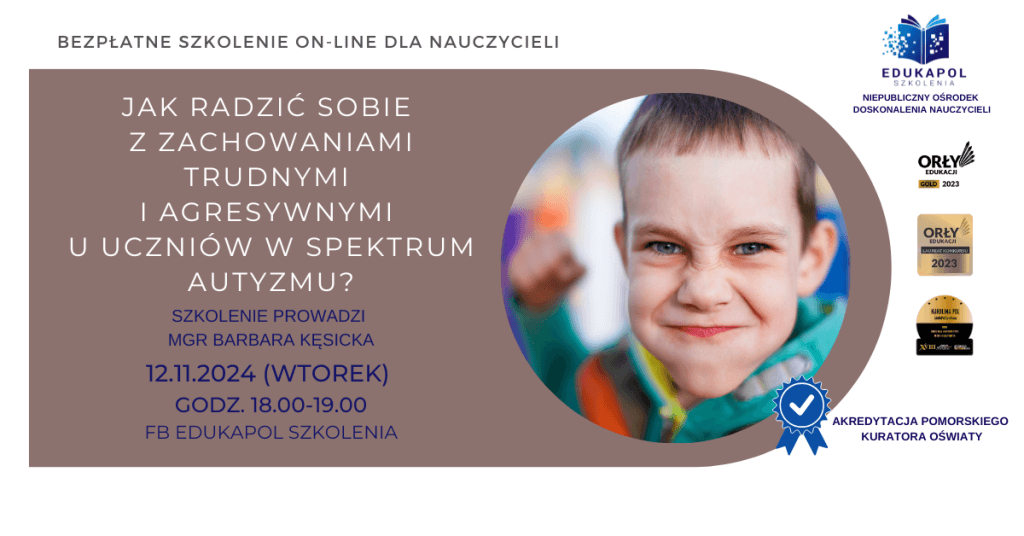 Zaświadczenie do szkolenia „Jak radzić sobie z zachowaniami trudnymi i agresywnymi u uczniów w spektrum autyzmu?”