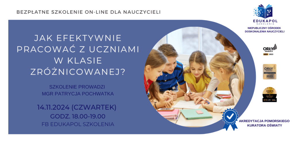 Zaświadczenie do szkolenia „Jak efektywnie pracować z uczniami w klasie zróżnicowanej?”