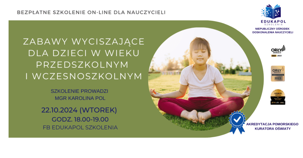 Bezpłatna retransmisja szkolenia została usunięta po 12.11.2024. Twoje zaświadczenie oraz scenariusze, które były gratisowym materiałem do zamówionego zaświadczenia są nadal dostępne. Rozwiąż krótki test, składający się z 5 pytań zamkniętych. Po rozwiązaniu testu, będzie możliwe POBRANIE ZAŚWIADCZENIE POTWIERDZAJĄCEGO UCZESTNICTWO W SZKOLENIU. Do zamówionego zaświadczenia udostępniamy scenariusze zajęć wyciszających dla dzieci w wieku przedszkolnym oraz wczesnoszkolnym.Polecamy, […]