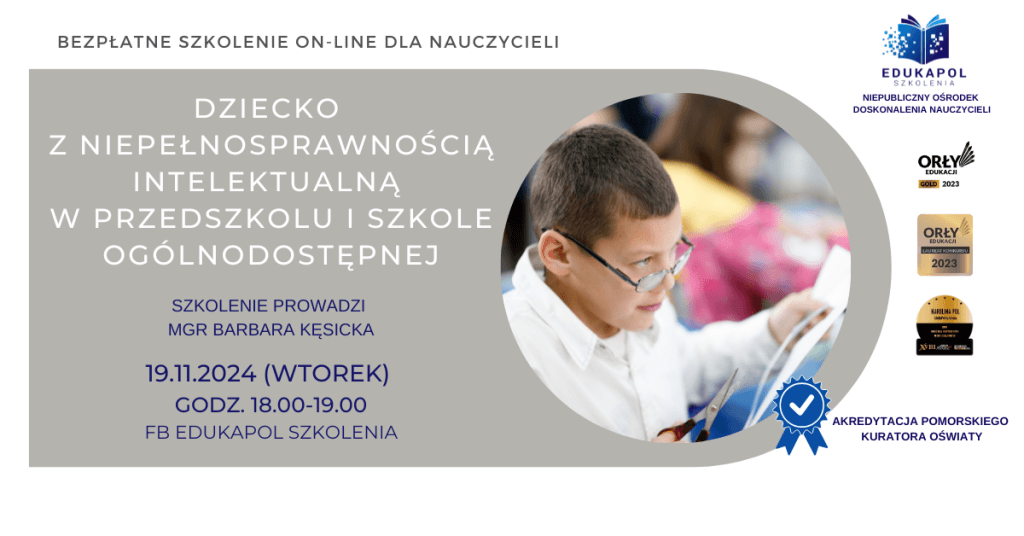 Zaświadczenie do szkolenia „Dziecko z niepełnosprawnością intelektualną w przedszkolu i szkole ogólnodostępnej”