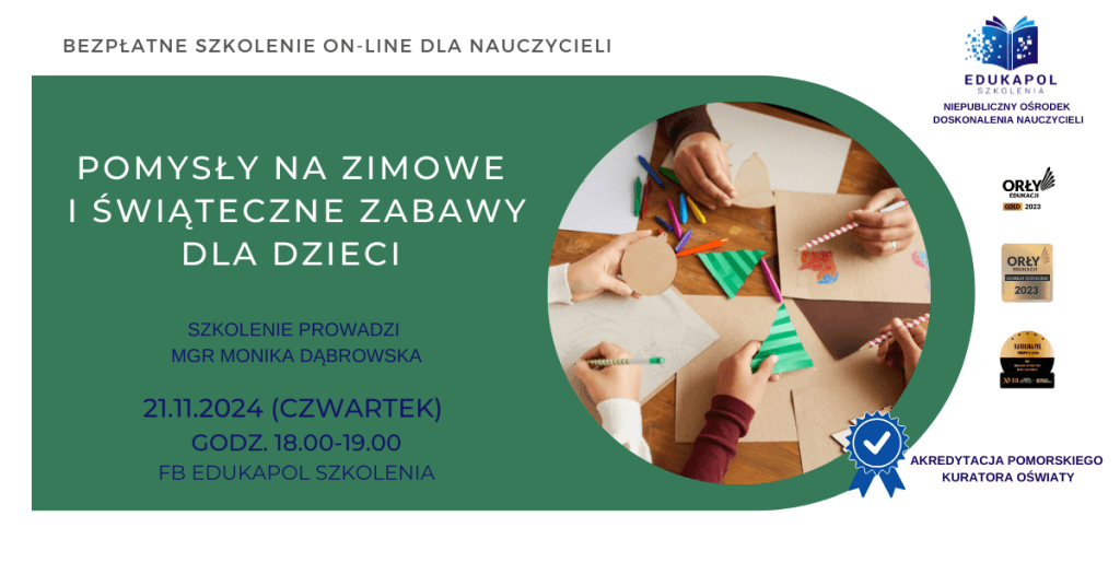 Zaświadczenie do szkolenia „Pomysły na zimowe i świąteczne zabawy dla dzieci”