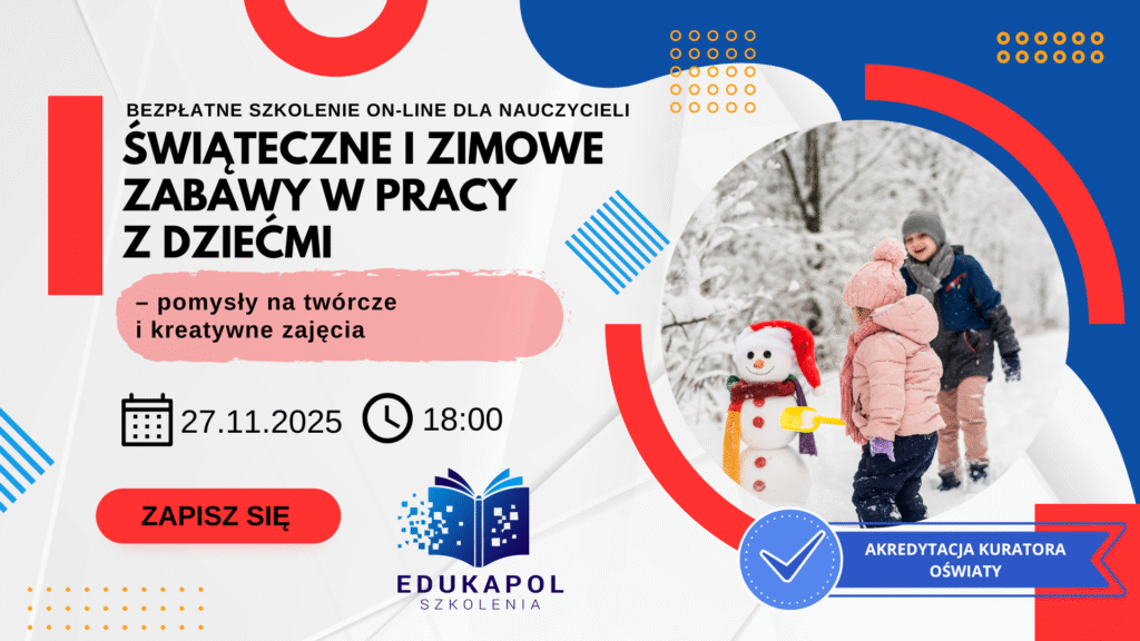 Zaświadczenie drukowane do szkolenia „Świąteczne i zimowe zabawy w pracy z dziećmi – pomysły na twórcze i kreatywne zajęcia”
