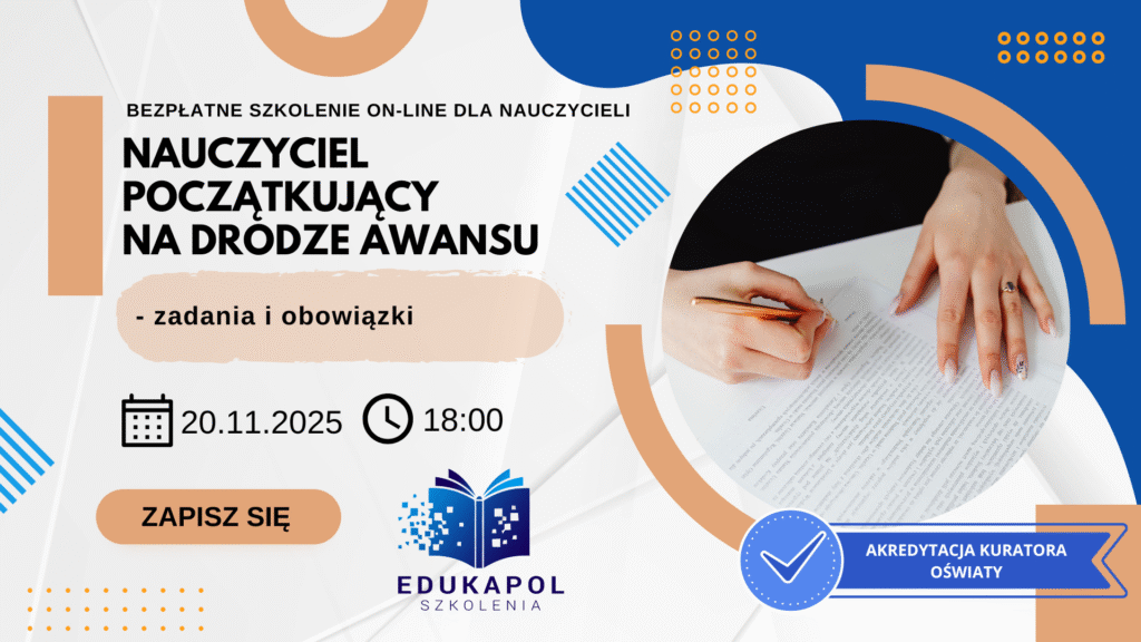 Zaświadczenie elektroniczne do szkolenia „Nauczyciel początkujący na drodze awansu – zadania i obowiązki”