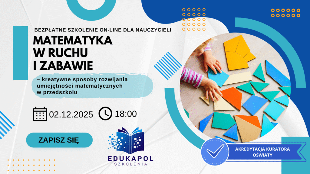 Zaświadczenie elektroniczne do szkolenia „Matematyka w ruchu i zabawie – kreatywne sposoby rozwijania umiejętności matematycznych w przedszkolu”