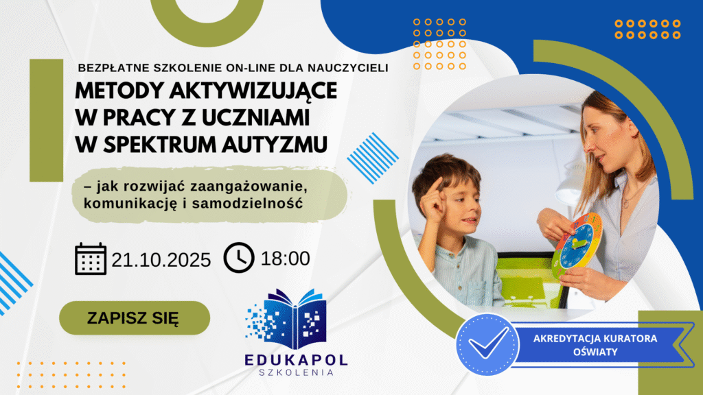 Zaświadczenie elektroniczne do szkolenia „Metody aktywizujące w pracy z uczniami w spektrum autyzmu – jak rozwijać zaangażowanie, komunikację i samodzielność”