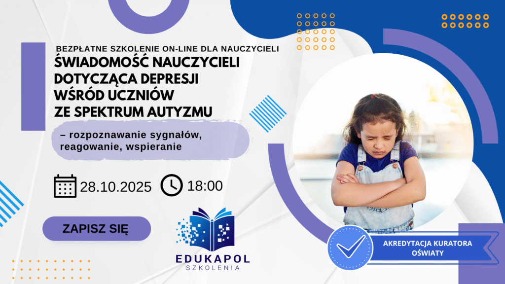 Zaświadczenie elektroniczne do szkolenia „Świadomość nauczycieli dotycząca depresji wśród uczniów ze spektrum autyzmu – rozpoznawanie sygnałów, reagowanie, wspieranie”