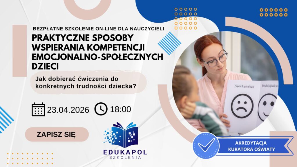 Zaświadczenie elektroniczne do szkolenia „Praktyczne sposoby wspierania kompetencji emocjonalno-społecznych dzieci. Jak dobierać ćwiczenia do konkretnych trudności dziecka?”